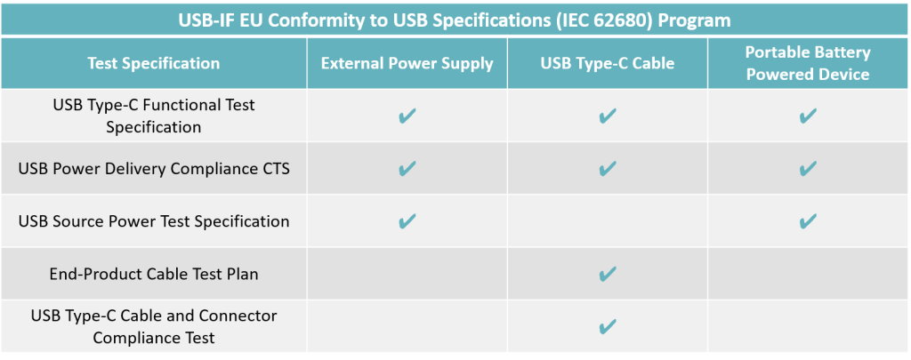 因應歐盟法規 EU DIRECTIVE 規範,2024/12/28 開始受規範的電子產品如手機、平板、數位相機或耳機等,若想在歐盟境內販售必須統一使用 USB Type-C 充電接頭並通過 USB-IF 所制定的 USB 認證規範,更多相關資訊可以參考技術文章「產品想進入歐盟?先了解 USB-IF 的 USB 規範 (IEC 62680)」。經過一番等待,USB 協會八月份正式推出「USB-IF EU Conformity to USB Specifications (IEC 62680)」認證計畫,通過此項認證表示您的產品符合歐盟通用充電器指令與 USB (IEC 62680) 規範。